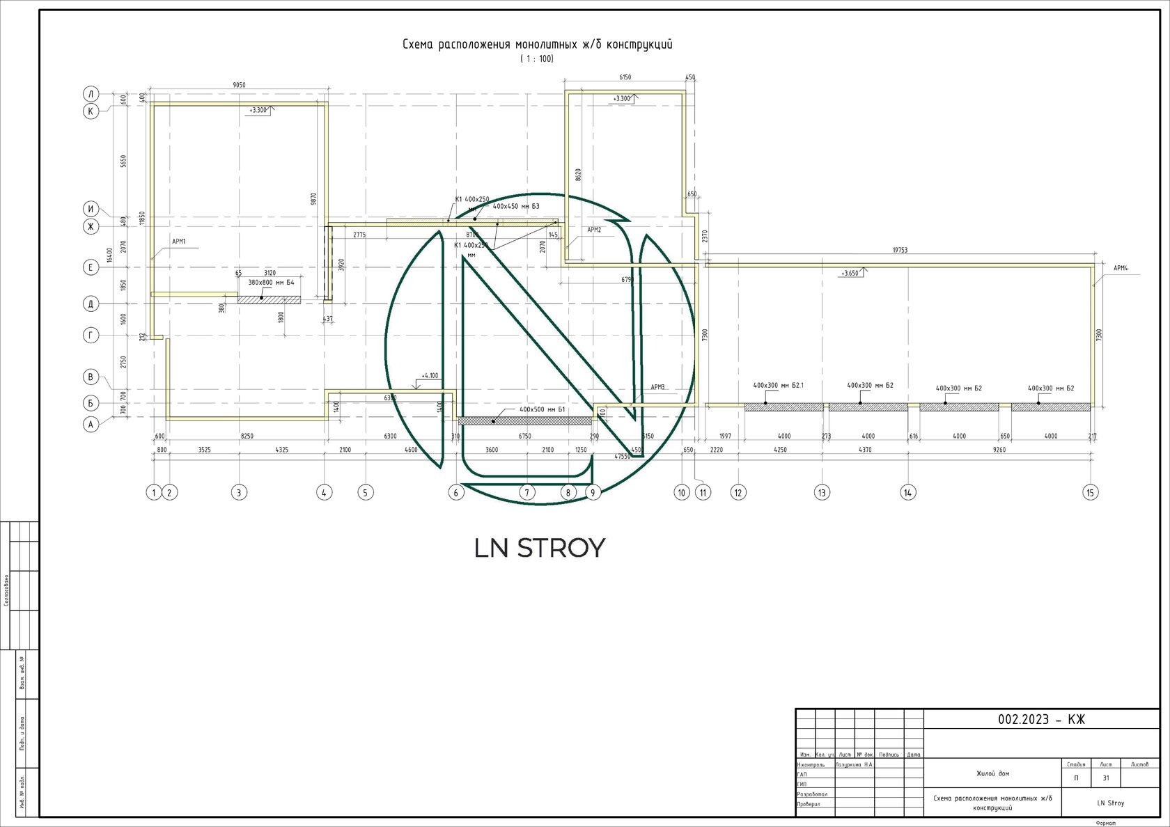 • опалубочный план плиты перекрытия на отметке +3,400 (привязки)